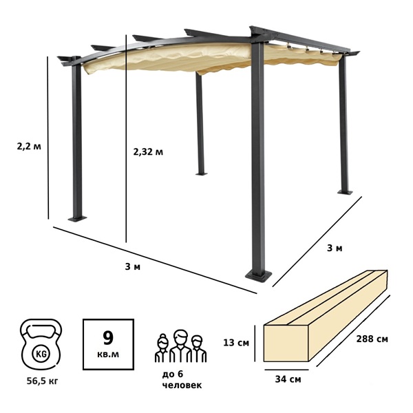 Внутри можно установить комплект садовой мебели для обедов на открытом воздухе или оборудовать затененную зону отдыха.