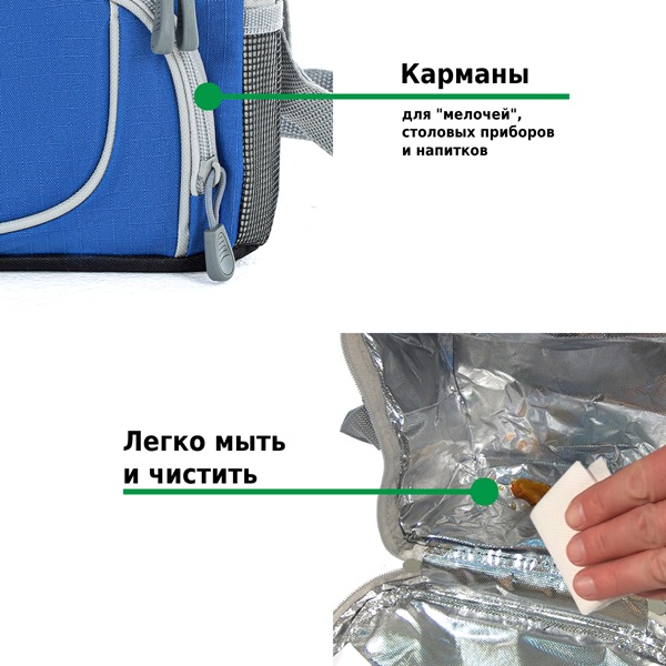 Сумки-холодильники универсальны и удобны в эксплуатации. Все модели сумок-холодильников Green Glade имеют дополнительные боковые карманы.