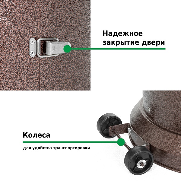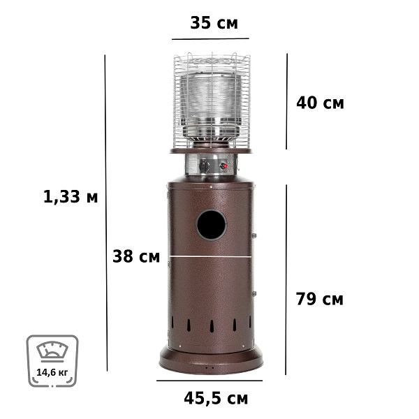 Подходит под любой газовый баллон до 27 л включительно (высота 59 см, диаметр 30 см). Газовый баллон в комплект не входит, регулятор и шланг – входят.