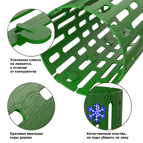 Защита стволов изготовлена из качественного пластика, устойчивого к УФ-излучению и перепадам температур, поэтому долго не выцветает и не требует демонтажа на зиму.