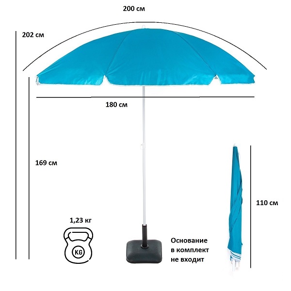 Перед использованием зонт необходимо надежно закрепить в основание для зонта. Основание в комплект поставки не входит.