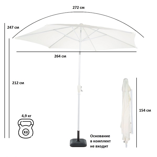 Перед использованием зонт необходимо надежно закрепить в основание для зонта. Основание в комплект поставки не входит.