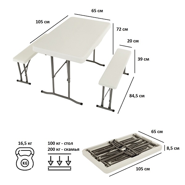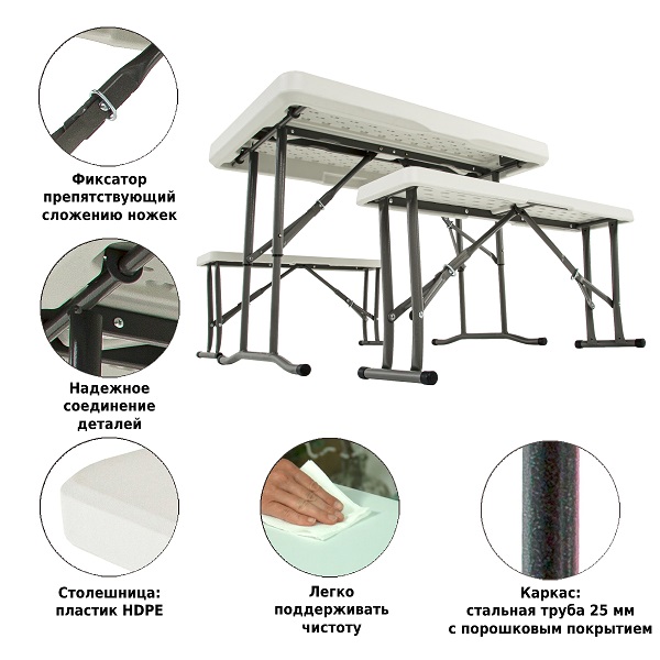 • Комплектация: стол, две скамейки
