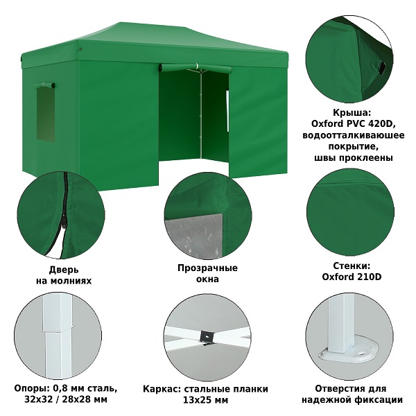 • Материал крыши: полиэстер Oxford PVC 420D с водоотталкивающим покрытием и проклеенными швами, устойчивый к выгоранию
